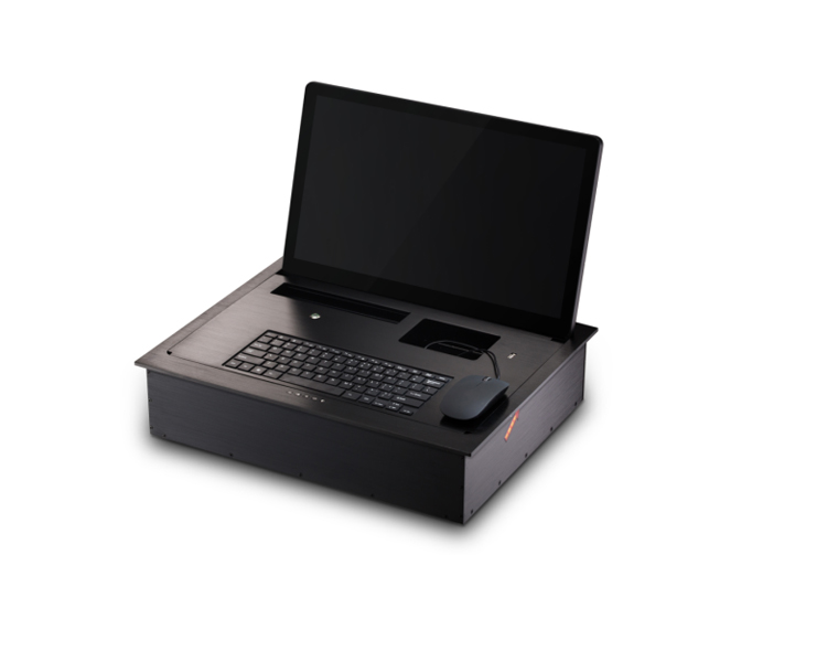 翻转无纸化智能桌面显示采用15.6英寸高清液晶屏,完全符合会议现场人体坐姿舒适可视效果,高度严格按不遮挡视线角度设计,搭载一体化翻转器,采用无缝、无背板连接,彰显产品高端大气;配置键盘及有线鼠标,键盘采用嵌入式安装,与桌面平齐;搭配无纸化会议终端,完美实现交互式无纸化强大的会议功能。(可选配多点电容触控屏功能)