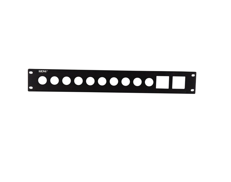 模块位:10个弱电位+2个强电位面板尺寸:483*65.5mm底盒尺寸:478.6*55*85mm(长*宽*深)面板材质:铝合金(拉丝黑色或银色)底盒材质:冷轧板(电镀或烤漆处理)※数据位可更换标签设计